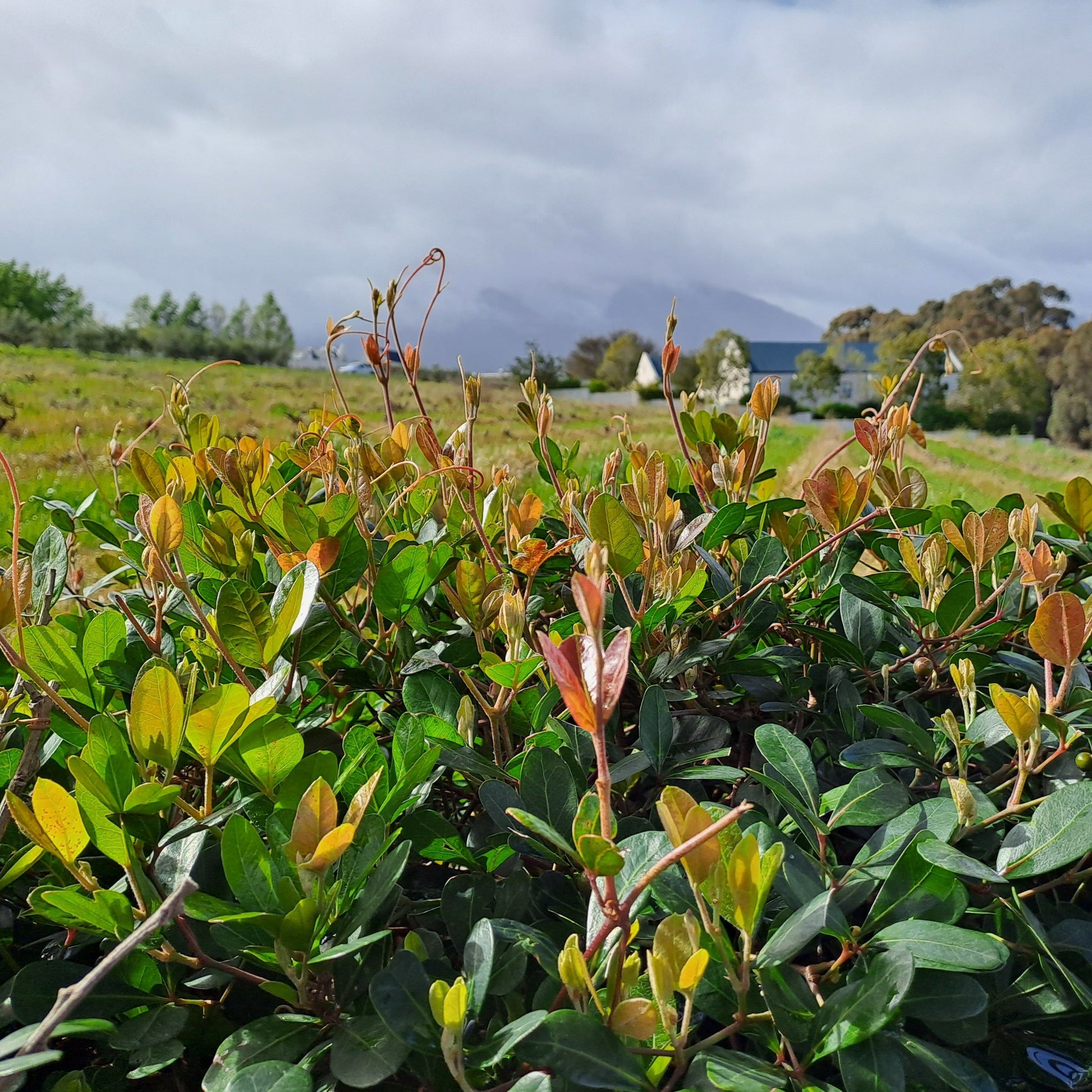 This tough evergreen climber grows into a beautiful hedge, especially along a fence. New grow is a reddish colour which contrasts the older green leaves. Bears red/black berries in late summer to winter, which attracts birds.
